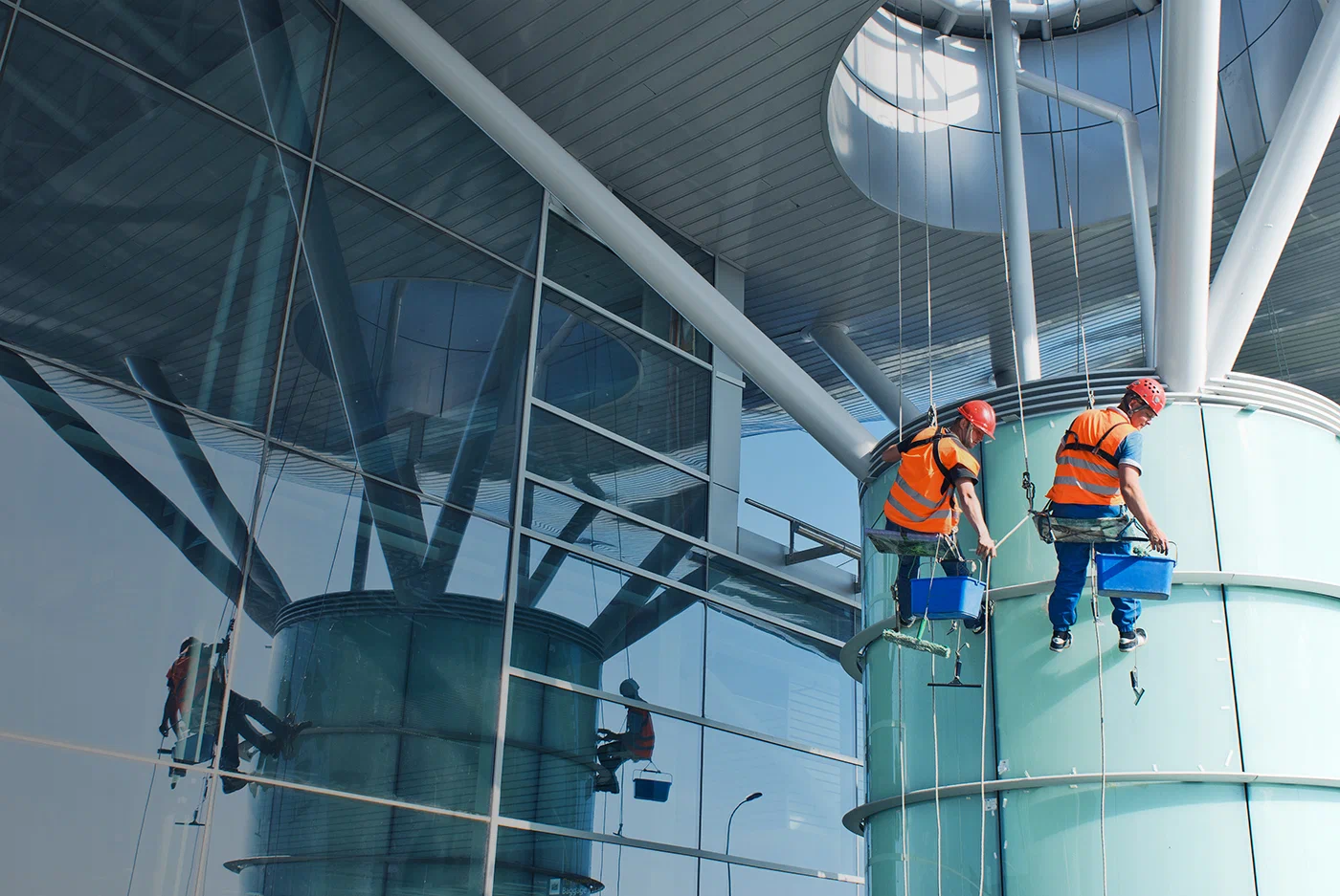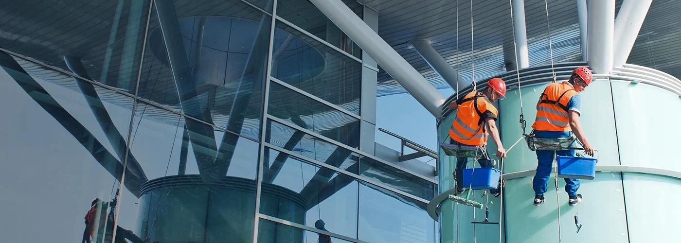 При мойке конструкций промышленными альпинистами важно соблюдать правила безопасности, например: