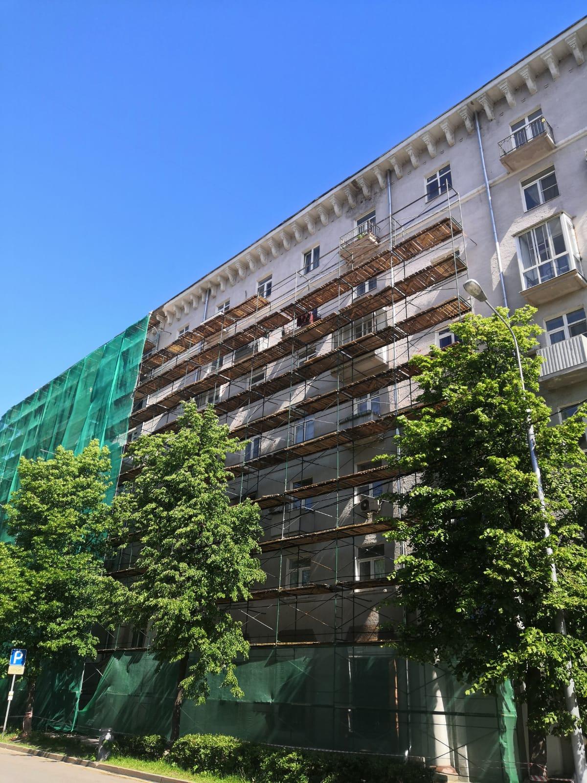 - Установка строительных лесов. Монтаж металлических или деревянных лесов для работы на высоте.