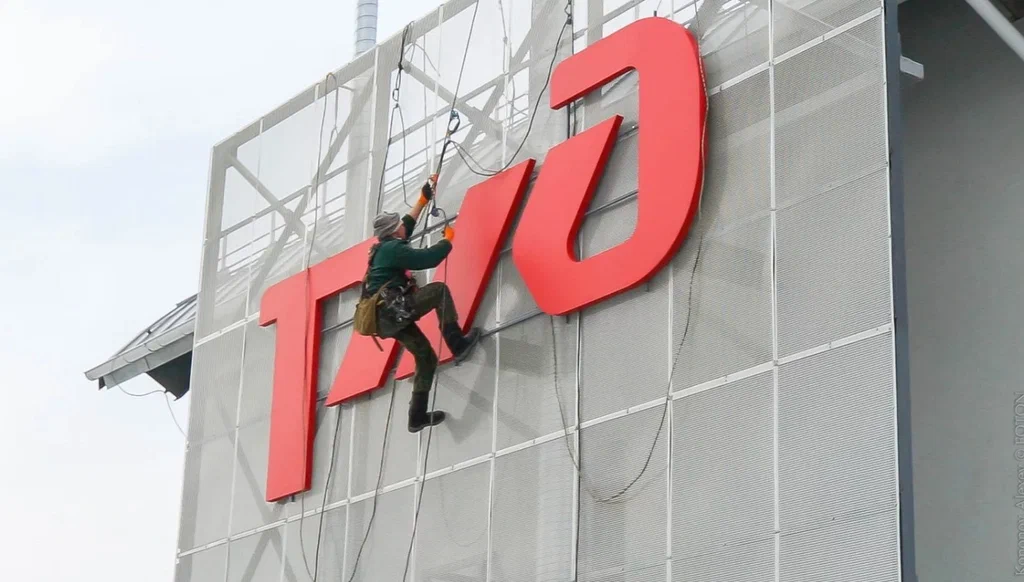 - Монтаж баннеров, вывесок, объёмных букв и других конструкций.